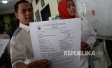 Ketua Dewan Pembina ACTA Habiburokhman (kiri), Wakil Ketua ACTA Nurhayati (kanan), memberi keterangan kepada wartawan seusai mendaftarkan gugatan perkara pidana Ahok di Pengadilan Jakarta Utara, Jakarta, Senin (5/12). (FOTO : Republika/Yasin Habibi)