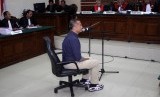 Terdakwa kasus dugaan korupsi pelepasan aset PT PWU Jatim, Dahlan Iskan (tengah), menjalani sidang lanjutan di Pengadilan Tindak Pidana Korupsi (Tipikor) Surabaya di Juanda, Sidoarjo, Jawa Timur, Selasa (6/12). (FOTO : Antara/Umarul Faruq)