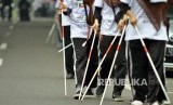 REPUBLIKA.CO.ID, BANDUNG -- Sejumlah peserta disabilitas berjalan beriringan saat rally tongkat di Jalan Pajajaran, Kota Bandung, Rabu (7/12).