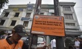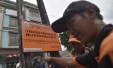 REPUBLIKA.CO.ID, JAKARTA -- Petugas memasang plang piutang PBB-P2 di salah satu bangunan di kawasan Kampung Melayu, Jakarta, Rabu (7/12).