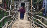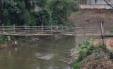 Jembatan yang terbuat dari bambu yang dibangun warga sekitar kawasan tersebut menghubungkan daerah Tanjung Barat, Jaksel dan Kampung Gedong, Jaktim.