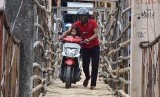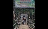 REPUBLIKA.CO.ID, JAKARTA -- Warga menuntun sepeda motornya saat melewati jembatan darurat di kawasan Tanjung Barat, Jakarta Selatan, Rabu (7/12).