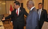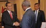 REPUBLIKA.CO.ID,NUSA DUA -- Presiden Joko Widodo didampingi Gubernur Bali Made Mangku Pastika menyambut kedatangan mantan Sekretaris Jenderal PBB, Kofi Annan dalam pembukaan Bali Democracy Forum (BDF) IX di Nusa Dua, Kamis (8/12).