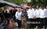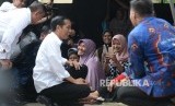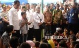 Presiden Joko Widodo bersama pengungsi saat mengunjungi tempat pengungsian korban gempa di Meureudu, Pidie Jaya, NAD, Jumat (9/12). (FOTO : Republika/ Wihdan )