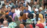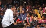 Presiden Joko Widodo emnyalami masyarakat saat mengunjungi tempat pengungsian korban gempa di Meureudu, Pidie Jaya, NAD, Jumat (9/12). (FOTO : Republika/ Wihdan )