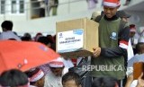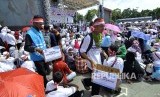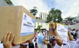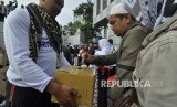 REPUBLIKA.CO.ID, BANDUNG -- Sejumlah santri Daarut Tauhid berkeliling melakukan penggalangan dana bantuan saat acara Tabligh Akbar "Pesantren Perekat NKRI" dalam rangka Milad Daarut tauhid ke-26, di Lapangan Gasibu, Kota Bandung, Senin (12/12).