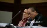 Terdakwa kasus suap distribusi kuota gula impor di Sumatera Barat (Sumbar) Irman Gusman saat menjalani sidang lanjutan di Pengadilan Tipikor, Jakarta, Selasa (13/12). (FOTO : Republika/Prayogi)