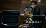 REPUBLIKA.CO.ID, JAKARTA -- Terdakwa kasus suap Raperda Reklamasi Teluk Jakarta M. Sanusi saat menjalani sidang lanjutan dengan agenda pembacaan tuntutan di Pengadilan Tipikor, Jakarta, Senin (13/12).