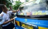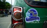Angkot jurusan Kalapa-Ledeng sudah menggunakan stiker angkot pintar saat Launching Angkot Pintar di Taman Vanda, Jl Merdeka, Kota Bandung, Jumat (16/12). (FOTO : Republika/Mahmud Muhyidin)