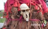Layaknya ksatria yang akan berangkat menuju medan perang para penari dilengkapi berbagai atribut perlengkapan perang. Mulai dari tameng, parang, hingga tombak. Tidak ketinggalan memorabilia dari medan laga berupa tengkorak musuh.
