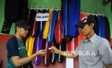Warga melakukan transaksi pembelian menggunakan Dirham di Pasar Muamalah, Depok, Jawa Barat, Ahad (18/12). (FOTO : Republika/Agung Supriyanto)