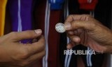 Pedagang menunjukan dirham di Pasar Muamalah, Depok, Jawa Barat, Ahad (18/12). (FOTO : Republika/Agung Supriyanto)