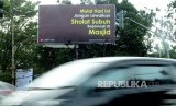 REPUBLIKA.CO.ID, BANFUNG -- Seorang pengendara motor melihat baliho yang bertuliskan Mulai Hari Ini Jangan Lewatkan Shalat Subuh Berjamaah di Masjid terpampang di Jalan Ahmad Yani, Kota Bandung, Jumat (16/12).