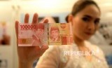 Model menunjukan uang Rupiah kertas wajah baru usai peresmian pengeluaran dan pengedaran uang Rupiah Tahu Emisi 2016 di Bank Indonesia, Jakarta, Senin (19/12). (FOTO : Republika/ Wihdan )