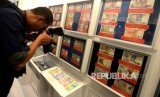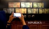Pengunjung memotret uang Rupiah baru usai peresmian pengeluaran dan pengedaran uang Rupiah Tahu Emisi 2016 di Bank Indonesia, Jakarta, Senin (19/12). (FOTO : Republika/ Wihdan )