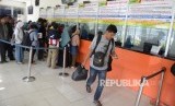 Calon penumpang kereta api mengajukan pembatalan tiket KAI jarak jauh di Loket Tiket Stasiun Pasar Senen, Jakarta, Selasa (20/12). (FOTO : Republika/ Wihdan )