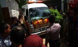 Mobil jenazah memasuki tempat kejadian perkara (TKP) penggerebekan dan penembakan terduga teroris di Setu, Tangerang Selatan, Banten, Rabu (21/12). (FOTO : Antara/Muhammad Iqbal)