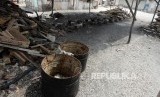 Kondisi tempat pengupasan kerang hijau yang tidak ada aktifitas di Muara Angke, Jakarta, Rabu (21/12). (FOTO : Republika/Wihdan Hidayat)