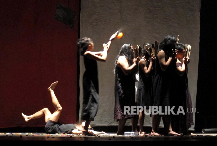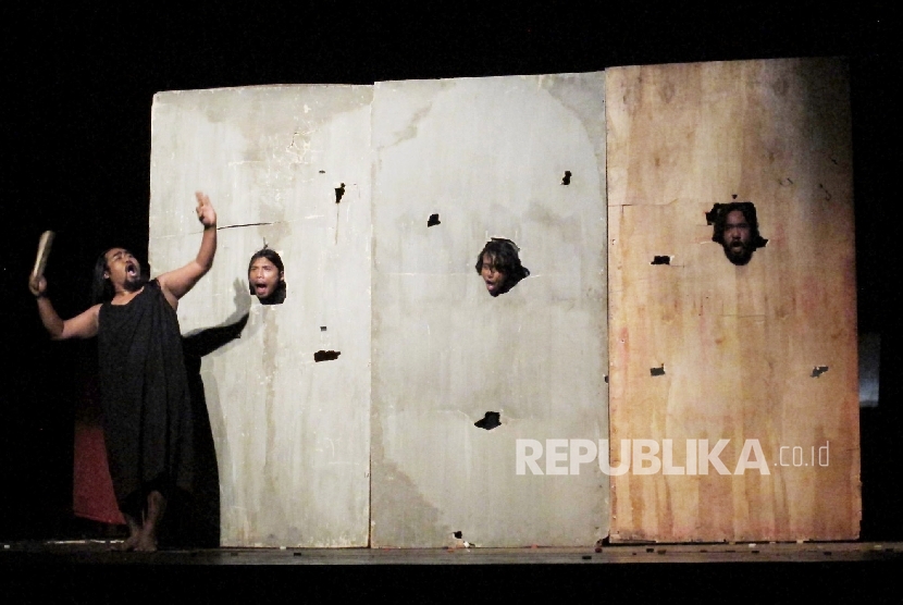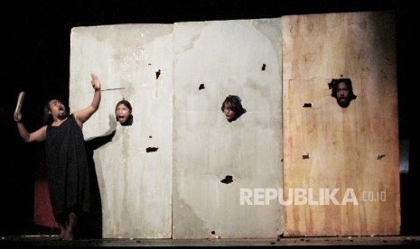 REPUBLIKA.CO.ID, BANDUNG -- Merayakan ulang tahunnya yang ke-34, kelompok Teater asal Bandung Teater Payung Hitam menggelar pentas "Post Haste" karya Nugraha Blazier Susanto dan Sutradara Rachman Sabur di Gedung Kesenian Sunan Ambu, Institut Seni Budaya Indonesia (ISBI) Bandung, Selasa (21/12) malam.