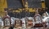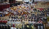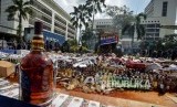 Ribuan botol minuman keras sebelum pemusnahan barang ilegal hasil sitaan bea cukai di halaman gedung Bea Cukai, Jakarta Timur, Jumat (23/12). (FOTO : Republika/ Raisan Al Farisi)