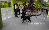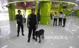 REPUBLIKA.CO.ID, JAKARTA -- Petugas kepolisian menggunakan anjing pelacak melakukan penyisiran saat melakukan pengamanan Stasiun Gambir, Jakarta Pusat, Jumat (23/12).