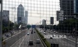 REPUBLIKA.CO.ID, JAKARTA -- Kendaraan melintas di jalan protokol kawasan Ibukota Jakarta, Senin (26/12).