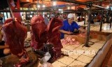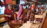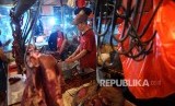 Pedagang memotong daging sapi di Pasar Grogol, Jakarta Barat, Selasa (27/12). (FOTO : Republika/Agung Supriyanto)