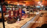 REPUBLIKA.CO.ID, JAKARTA -- Pedagang daging sapi tertidur di lapak peenjualan daging, Pasar Grogol, Jakarta Barat, Selasa (27/12).