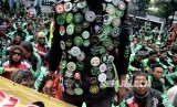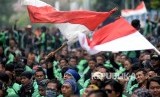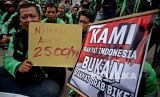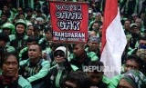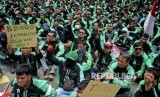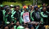 Pengemudi GrabBike se-Jabodetabek menggelar aksi unjuk rasa di Kantor Pusat Grab Bike, Kuningan, Jakarta, Kamis (5/1). (FOTO : Republika/Prayogi)