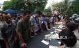 Ribuan warga antre untuk mengurus perpanjangan di Direkorat Lalu Lintas Polda Metro Jaya, Jakarta, Kamis (5/1). (FOTO : Republika/Raisan Al Farisi)