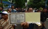 Warga menunjukan BPKB saat antre untuk mengurus perpanjangan di Direkorat Lalu Lintas Polda Metro Jaya, Jakarta, Kamis (5/1). (FOTO : Republika/Raisan Al Farisi)