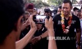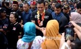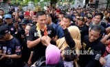 REPUBLIKA.CO.ID,JAKARTA -- Warga Jatinegara antusias menyambut kehadiran Cagub DKI Jakarta Agus Harimurti Yudhoyono (AHY) saat berkampanye di rusun Jatinegara Barat, Jakarta, Ahad (8/1).