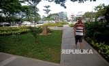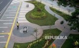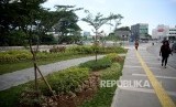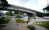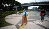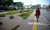 REPUBLIKA.CO.ID, JAKARTA -- Pejalan kaki melintasi trotoar di Jalan Jatibaru Raya,Tanah Abang, Ahad (8/1).