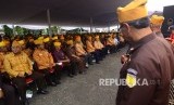 Sejumlah anggota Legium Veteran Republik Indonesia (LVRI) mengikuti acara peringatan Hari Ulang Tahun ke-60 LVRI tingkat Provinsi Jabar, di Monumen Peruangan Rakyat Jawa Barat, Kota Bandung, Selasa (10/1). (FOTO : Republika/Mahmud Muhyidin)