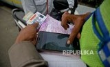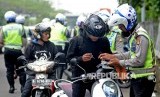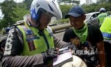 REPUBLIKA.CO.ID, JAKARTA -- Petugas polisi melakukan penindakan terhadap pelanggar lalu lintas dengan mengunakan sistem E-Tilang saat razia kendaraan bermotor di Kawasan Kemayoran, Jakarta, Rabu (11/1).