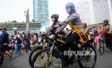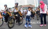 REPUBLIKA.CO.ID, JAKARTA -- Sejumlah polwan dari Sabhara Polda Metro Jaya melakukan patroli bersepeda pada hari bebas kendaraan bermotor (HBKB) di Kawasan Bundaran HI Jakarta, Ahad (15/1).
