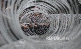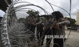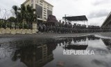 Anggota Kepolisian menjaga jalannya aksi FPI di depan Mabes Polri, Jakarta, Senin (16/1). (FOTO : Republika/Raisan Al Farisi)