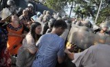 Sejumlah warga mencoba menghadang petugas kepolisian yang mengawal eksekusi tanah di Kapalo Koto, Padang, Sumatera Barat, Rabu (18/1). (FOTO : Antara/Iggoy el Fitra)
