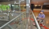 Penyandang disabilitas dari Yayasan Difabel Mandiri Indonesia (YDMI) mengamati pergerakan harga saham saat mengikuti Sekolah Pasar Modal bagi DIfabel di Bursa Efek Indonesia, Jakarta, Rabu (18/1). (FOTO : Antara/Yudhi Mahatma)