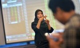 Mentor menggunakan bahasa isyarat saat menerangkan kepada penyandang disabilitas dari Yayasan Difabel Mandiri Indonesia (YDMI) dalam Sekolah Pasar Modal bagi DIfabel di Bursa Efek Indonesia, Jakarta, Rabu (18/1). (FOTO : Antara/Yudhi Mahatma)