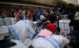 REPUBLIKA.CO.ID, JAKARTA -- Pedagang menyelamatkan barang-barangnya dari lokasi Blok I dan Blok II Pasar Senen yang terbakar di Jakarta, Kamis (19/1).