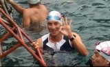 Calon Wakil Gubernur DKI Jakarta nomor urut 3, Sandiaga Uno, berenang dari Pulau Karya ke Pulau Panggang lalu ke Pulau Pramuka saat sosialisasi program di wilayah Kepulauan Seribu, Jakarta, Sabtu (21/1). (FOTO : ist)