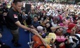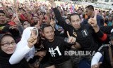 REPUBLIKA.CO.ID, JAKARTA -- Calon Gubernur DKI Jakarta Agus Harimurti Yudhoyono melakukan senam bersama warga saat melakukan kampanye di Cibubur, Jakarta Timur, Ahad (22/1).