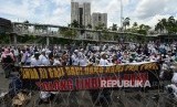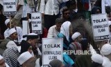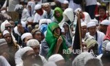 REPUBLIKA.CO.ID, JAKARTA -- Ribuan massa yang tergabung dalam Gerakan Nasional Pengawal Fatwa (GNPF) MUI melakukan Aksi Bela Ulama dengan menunggu pemeriksaan Habib Rizieq Shihab di Polda Metro Jaya, Jakarta,Senin (23/1).