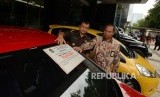 REPUBLIKA.CO.ID, JAKARTA -- Direktur Penegakan Hukum DJP Dadang Suwarna didampingi petugas kejaksaan memeriksa barang bukti kendaraan mewah yang disita terkait kasus dugaan tindak pidana pencucian uang (TPPU) dengan tersangka Amie Hamid di Kantor Pusat Dirjen Pajak, Jakarta, Kamis (26/1).