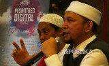 Ustadz Erick Yusuf (kanan) didampingi Tim medsos Pesantren Digital Habibie Yukejaen, menyampaikan paparannya pada acara Grand Lounching Pesantren Digital di Jakarta, Jumat (27/1). (FOTO : Republika / Darmawan)