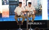 Pasangan cagub DKI nomor tiga Anies Baswedan-Sandiaga Uno saat mengikuti debat kedua cagub-cawagub DKI Jakarta di Jakarta, Jumat (27/1) malam. (FOTO : Republika/Wihdan Hidayat)