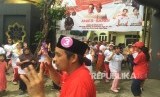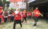 REPUBLIKA.CO.ID, JAKARTA -- Warga mengikuti kegiatan senam bersama dengan relawan Sohib Anies Sandi, di Jakarta, Selasa (31/1).