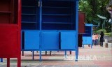 Warga melintas di kios warna-warni yang sudah tersedia di Skywalk Cihampelas, Kota Bandung, Selasa (31/1). (FOTO : Mahmud Muhyidin)