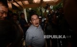Mantan Ketua KPK Antasari Azhar memberikan keterangan kepada awak media seusai mengunjungi gedung Ditreskrimsus, Polda Metro Jaya, Jakarta, Rabu (1/2). (FOTO : Republika/Raisan Al Farisi)